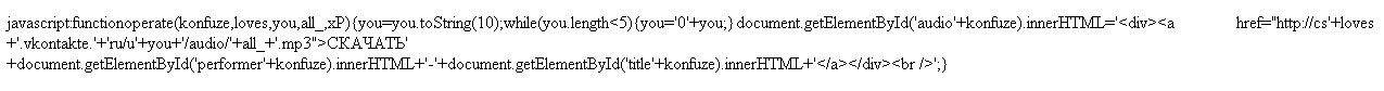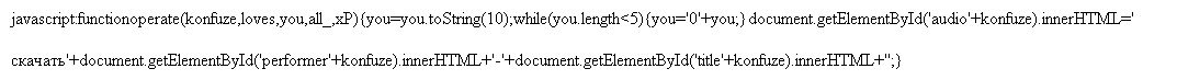Довольно удобный и простой метод. Как скачать аудиозапись? Все довольно просто, заходите на любую страницу, где эти файлы лежат (У себя в аудиозаписях, либо аудиозаписях группы, а возможно и у друзей). Берете и копируете этот скрипт в свой буфер: